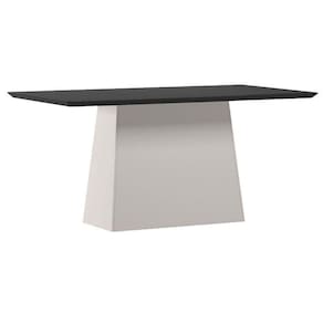 Mesa de Jantar 160 cm Barbara com Vidro Off WhIte Preto New Ceval