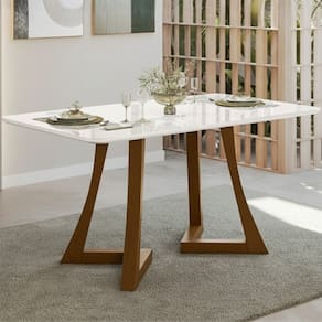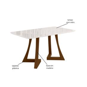 Mesa de Jantar 160cm com Tampo de Vidro Ana Sonetto, sendo produzido em MDP e MDF com tampo de MDF 25mm e vidro de 4mm, oferecendo durabilidade e um design moderno. Seu acabamento em pintura PU garante um visual sofisticado e maior protecao, tornando-o ideal para valorizar diversos ambientes com estilo e funcionalidade.