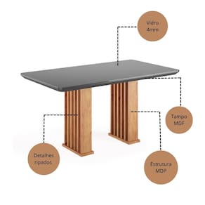 Mesa de Jantar 160cm com Tampo de Vidro Munique Viero A Mesa Munique 160cm e ideal para 6 lugares e une estilo e funcionalidade. A base vazada em MDP com detalhes ripados garante estabilidade e um visual moderno. O tampo em MDF com vidro colado de 4 mm oferece resistencia e acabamento refinado, enquanto a pintura UV semibrilho facilita a limpeza. Com cantos arredondados para mais seguranca e capacidade de ate 50 kg, e perfeita para refeicoes em familia e encontros com amigos um destaque na decoracao.