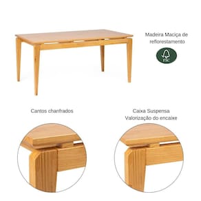 Com Design moderno e sofisticado, a mesa de Jantar Seiva é uma excelente proposta para quem busca por um móvel funcional e cheio de personalidade para compor o ambiente de jantar. Com linhas retas e encaixes evidentes, o produto chama a atenção pela sua estrutura leve e fluida, o que dá a sensação de flutualibilidade. Além de se destacar pelo seu design contemporaneo, a Mesa possui ainda um excelente espaço, podendo acomodar 6 pessoas confortavelmente. A Mesa Seiva é produzida em madeira maciça de reflorestamento Pinus, tingida com verniz, matérias-primas e acabamentos que garantem a resistência e a durabilidade. Acabamento: Pintura UV Acabamento da Base: Acabamento do Tampo: Pintura UV Ambiente Principal: Sala de Jantar Complexidade da Montagem: Média: pode ser montado por mais de uma pessoa e/ou necessite de maior conhecimento para montagem Cor: Amendoa Cor do Produto: Amêndoa Design da Base: 4 Pés Dobrável: Não Escala de Brilho: Fosco Espessura do Tampo: 28 Extensível: Não Informações Complementares: Itens Inclusos: 1 Mesa, Kit Ferragens e Manual de Montagem Largura Extendida: Largura Quando Extendida: Linha ou Coleção: Seiva Manual de Especificação Técnica: Manual de Montagem e Instalação: https://cdn2.madeiramadeira.com.br/atributo/artemobili/1092834-64639-mesa-de-jantar-seiva.pdf Material da Base: Material do Tampo: Madeira Maciça Material Principal: Madeira Maciça Medida da Base (A x L x P): Medida do Suporte Giratório (L x C x E): Medida do Tampo (L x C x E): 160 x 90 x 28 Necessita Montagem: Sim Origem do Produto: Nacional Peso: 28.6 Possui Base: Não Possui Rodízio: Possui Suporte Giratório: Recomendações de Uso, Manutenção e Limpeza: Pano levemente umedecido. Não utilizar materiais abrasivos. Sistema de Montagem: Parafuso, arruela, chave e feltro. Suporta Até (kg): 72 Tipo de Madeira Maciça: Pinus Tipo de Madeira Maciça da Base: Tipo de Madeira Maciça do Tampo: Pinus