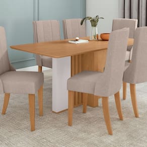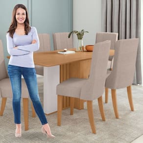 ( Mesa avulsa, não acompanha cadeiras. ) Sua sala de jantar ou cozinha precisa ser bem equipada para deixar os momentos de confraternização ainda mais especiais, seja acompanhando o dia a dia ou recebendo os amigos em diferentes ocasiões. Para isso, o modelo Venus é a opção ideal! Graças ao seu tampo amplo, você vai conseguir acomodar bem todos os elementos necessários às refeições, como pratos, copos, talheres e bandejas. E, já que um lar-style ideal também é composto por uma bela decoração, o design da peça ajuda a tornar o cômodo mais nobre. A base amadeirada, somada ao tampo de cor sóbria, com bordas arredondadas e acabamento em vidro, confere um toque elegante ao seu espaço. Agora é só adquirir as cadeiras dos sonhos e desfrutar de um lar perfeito ;)