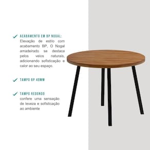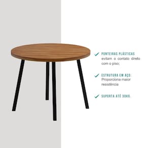 Medidas: Largura: 99 cm | Altura: 76,5 cm | Profundidade: 99 cm Peso: 19,90 Kg Tampo: BP 40mm Estrutura: Tubo de Aço 40x40mm