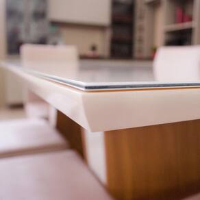 Seu design clean combina com diferentes estilos de decoração, e o tampo de vidro com canto reto adiciona um toque de modernidade.