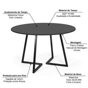 MDFMesa de Jantar 4 Lugares 90cm Redonda Industrial Rigo - Straub Web Preta -