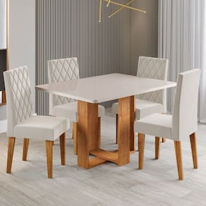 - Acompanha: Mesa de Jantar + 4 Cadeiras + Kit Ferragens + Manual de Montagem