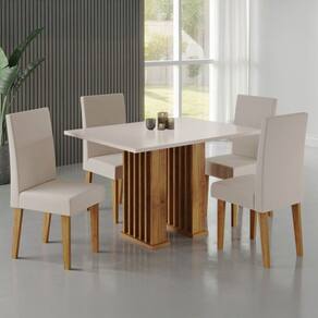 Mesa de Jantar 4 Lugares Arezo Ripado Marrom/Blonde/Pastel - Viero Móveis