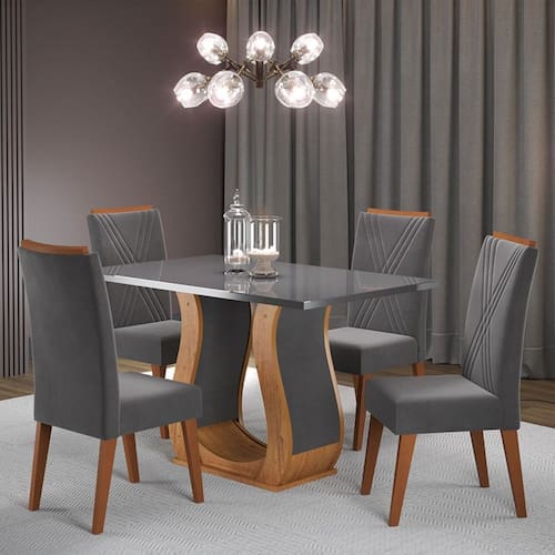O(a) Mesa de Jantar 4 Lugares Bahrein Grafite - Loja é produzido em MDF, MDP e Madeira Maciça na escala de brilho Semi-Brilho, e possui um grau de dificuldade de montagem: Médio.