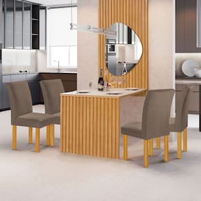 O(a) Mesa de Jantar 4 Lugares Bella/Canela com Vidro e Espelho Ripado Cinamomo/Off White/Veludo Bege Escuro - Cel Móveis é produzido em MDF na escala de brilho Fosco, e possui um grau de dificuldade de montagem: Médio.