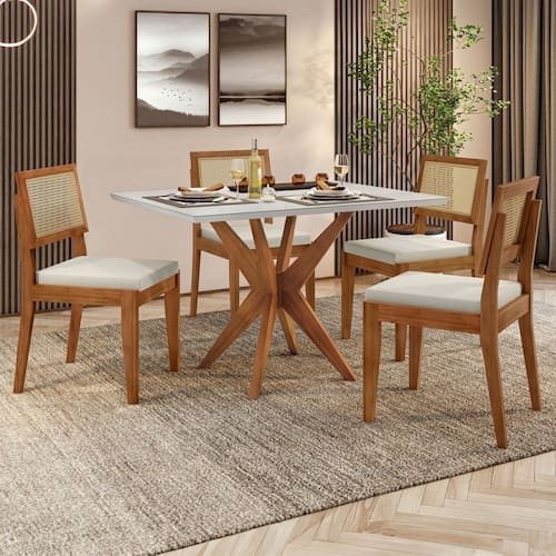 - Acompanha: 1 Mesa, 4 Cadeiras, Kit Ferragens e Manual de Montagem