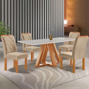 O(a) Mesa de Jantar 4 Lugares Kyra/Arthus com Vidro Cinamomo/Off White/Suede Cru - Cel Móveis é produzido em MDF e Vidro na escala de brilho Fosco, e possui um grau de dificuldade de montagem: Médio.