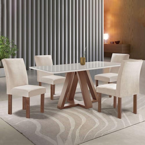 Mesa de Jantar 4 Lugares Kyra/Canela com Vidro Chocolate/Off White/Suede Bege - Cel Móveis