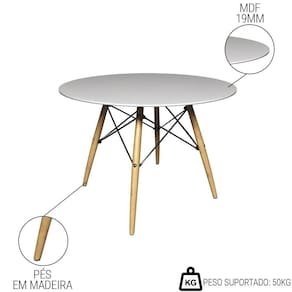 Por ser uma mesa de jantar redonda, o design contribui para que todos estejam em constante interação e, ainda, agrega um tom de personalidade ao ambiente. Além disso, a estrutura robusta do tampo em MDF garante durante as refeições, de modo que você possa curtir esse momento com tranquilidade.