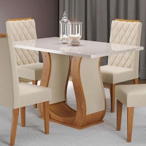 Mesa de Jantar Inovare retangular 120x80 cm, perfeita para 4 lugares. Possui tampo em MDP com vidro de 0,4cm, que garante resistência e sofisticação. Sua base estofada agrega charme e elegância ao ambiente, unindo design contemporâneo e funcionalidade. Ideal para compor salas de jantar modernas com conforto e estilo Acabamento: Pintura UV Acabamento da Base: Pintura UV Acabamento do Tampo: Pintura UV Ambiente Principal: Sala de Jantar codigo_ean: 7900288235947 Complexidade da Montagem: Média: pode ser montado por mais de uma pessoa e/ou necessite de maior conhecimento para montagem Cor: Mel/Off White Cor do Produto: Mel/Off White Dobrável: Não Escala de Brilho: Semi-Brilho Espessura do Tampo: 25 mm Extensível: Não Informações Complementares: Mesa de jantar 4 Lugares Itens Inclusos: 1 Mesa, Kit Ferragens e Manual de Montagem Linha ou Coleção: Inovare Manual de Montagem e Instalação: https://cdn2.madeiramadeira.com.br/atributo/viero-moveis/3193125-528-17575119173824.pdf Marca: Viero Material da Base: MDF/MDP Material do Tampo: Vidro/MDP Material Principal: MDP Medida da Mesa (A x L x P): A:79 x L:120 x P:80cm Medida do Tampo (L x C x E): L:120 x C:80 x E:2,5cm Necessita Montagem: Sim Origem do Produto: Nacional Peso: 42,35 kg Possui Portas: Não Possui prateleira: Não Possui Rodízio: Não Possui Suporte Giratório: Não Possui Vidro: Sim Recomendações de Uso, Manutenção e Limpeza: limpar com pano levemente umedecido em água Sistema de Montagem: Parafusos, cavilhas Suporta Até (kg): 50 kg