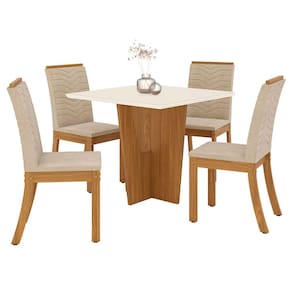 Mesa de Jantar 4 Lugares Scarlett com Vidro Nature/Off White/Linho - Panorama Móveis - Bege
