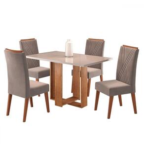 O(a) Mesa de Jantar 4 Lugares Singapura com Vidro Perola/Off White - Loja é produzido em MDF, MDP, Madeira Maciça e Vidro na escala de brilho Semi-Brilho, e possui um grau de dificuldade de montagem: Médio.