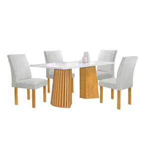 O(a) Mesa de Jantar 4 Lugares Stella Canela com Vidro Ripado Cinamomo/Off White/Boucle Gelo - Cel Móveis é produzido em MDF na escala de brilho Fosco, e possui um grau de dificuldade de montagem: Médio.
