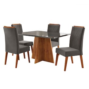 O(a) Mesa de Jantar 4 Lugares Stilo com Vidro Marrom/Vidro Grafite/Veludo Cinza - Viero Móveis é produzido em MDF, MDP e Eucalipto na escala de brilho Semi-Brilho, e possui um grau de dificuldade de montagem: Médio.