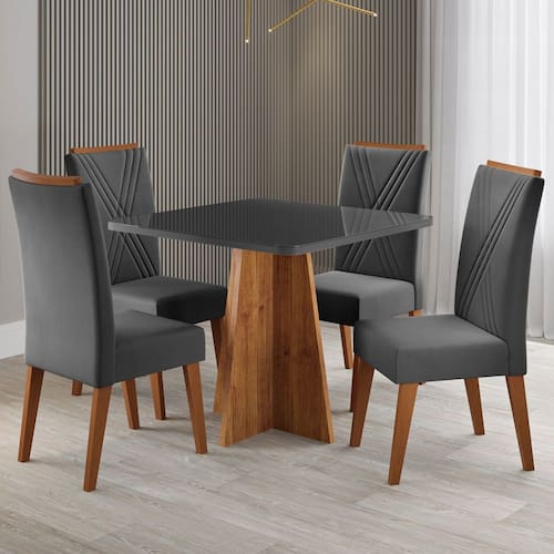 - Acompanha: Mesa de Jantar + 4 Cadeiras + Kit Ferragens + Manual de Montagem