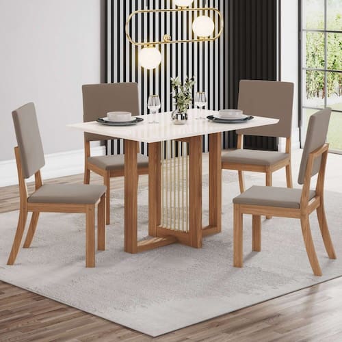 O(a) Mesa de Jantar 4 Lugares Valentina Milla Natural/Cinza - Pnr Móveis é produzido em MDF e MDP na escala de brilho Fosco, e possui um grau de dificuldade de montagem: Médio.
