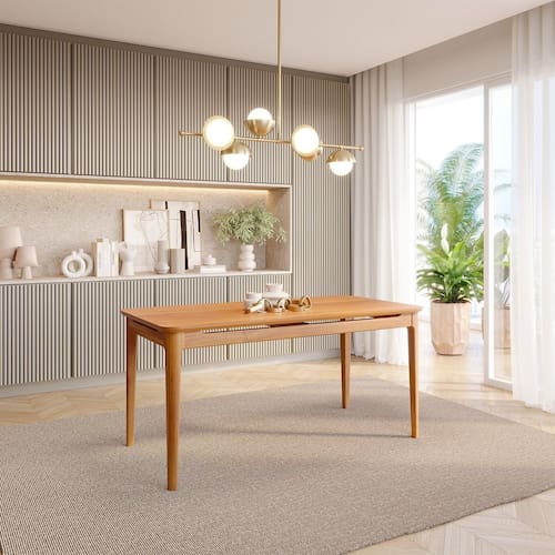A linha Miriti é uma combinação de elegância e resistência, projetada para ambientes que buscam sofisticação e funcionalidade. O nome Miriti faz referência à palmeira amazônica, conhecida por sua versatilidade e força, características que se refletem nos materiais e no design da linha. As mesas são produzidas em madeira tauari maciça, com tampo de MDF de alta qualidade e pintura UV com padrão amadeirado, garantindo durabilidade e um visual natural. As cadeiras seguem o mesmo padrão de excelência, com estrutura também em tauari maciço, além de assento e encosto estofados em espuma D28, que combina firmeza e conforto. A espuma D28, com densidade de 28, oferece suporte moderado e durabilidade superior, preservando sua forma mesmo com o uso diário, o que proporciona uma experiência de conforto prolongada. O revestimento em tecido tipo linho acrescenta elegância e um toque suave ao conjunto.