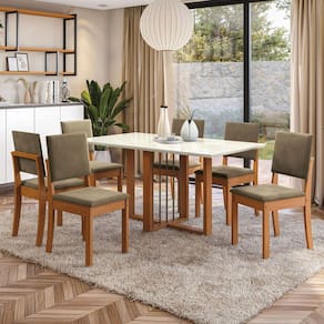 O(a) Mesa de Jantar 6 Lugares Adria com Vidro Canela/Off White - Kappesberg Jantar é produzido em MDF e MDP na escala de brilho Fosco e Semi-Fosco, e possui um grau de dificuldade de montagem: Médio.