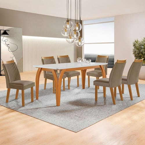 - Acompanha: Mesa de Jantar + 6 Cadeiras + Kit Ferragens + Manual de Montagem