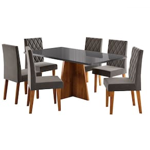 O(a) Mesa de Jantar 6 Lugares Antonella Marrom/Cinza/Veludo Cinza - Viero Móveis é produzido em MDF e MDP na escala de brilho Semi-Brilho, e possui um grau de dificuldade de montagem: Médio.