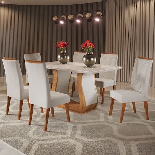 - Acompanha: Mesa de jantar + 6 Cadeiras + kit ferragem + manual de montagem