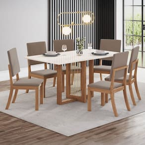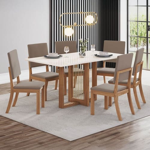 O(a) Mesa de Jantar 6 Lugares Bela Natural/Off White/Marrom Amêndoa Bela - Pnr Móveis é produzido em MDP na escala de brilho Fosco, e possui um grau de dificuldade de montagem: Médio.