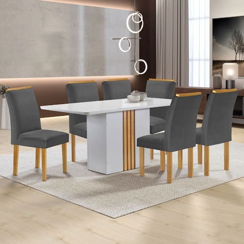 - Acompanha: 1 Mesa + 6 Cadeiras + Manual de Montagem + Kit Ferragens