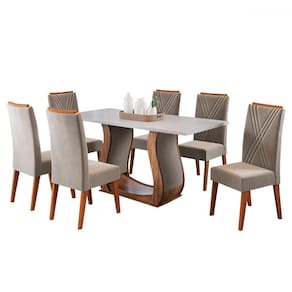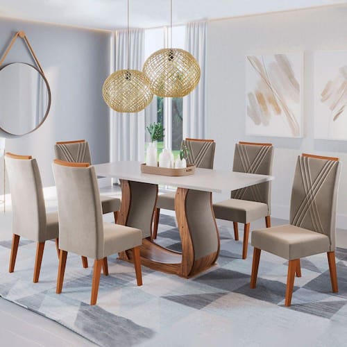 O(a) Mesa de Jantar 6 Lugares Corsa Imbuia/Blonde/Veludo Perola - Viero Móveis é produzido em MDF e MDP na escala de brilho Semi-Brilho, e possui um grau de dificuldade de montagem: Médio.