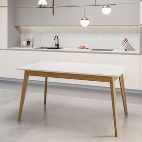 A Mesa de Jantar 6 Lugares Dobuê Topázio 160x90cm foi desenvolvida com um design moderno, minimalista e atemporal perfeito para a família toda podendo comportar até 6 lugares. A sua estrutura é forte e resistente pois conta com pés fabricados em madeiras de eucalipto com acabamento em verniz, já o tampo é em MDF de 25mm com acabamento em pintura UV resultando em mais qualidade e durabilidade a peça! Cor: Marrom