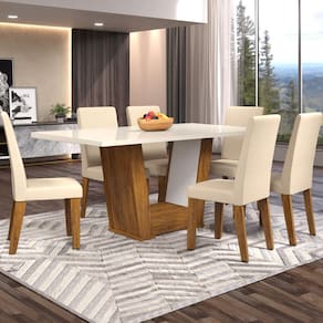 Acompanha: 1 mesa + 6 cadeiras + manual de montagem + kit ferragens