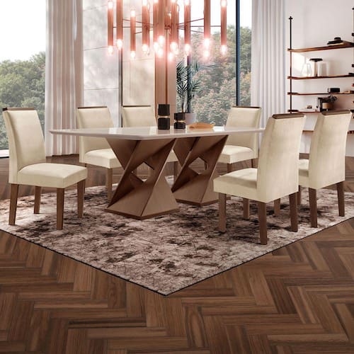 O(a) Mesa de Jantar 6 Lugares Genova/Luísa com Vidro Chocolate/Off White/Bege - Cel Móveis é produzido em MDF na escala de brilho Fosco, e possui um grau de dificuldade de montagem: Médio.