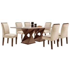 Mesa de Jantar 6 Lugares Genova/Luísa com Vidro Chocolate/Off White/Bege - Cel Móveis