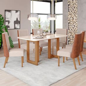 O(a) Mesa de Jantar 6 Lugares Isabella com Vidro Nature/Off White/Courano/Linho - Loja é produzido em MDF e MDP na escala de brilho Brilho e Fosco, e possui um grau de dificuldade de montagem: Médio.