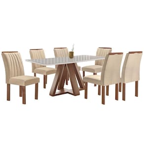 O(a) Mesa de Jantar 6 Lugares Kyra/Arizona com Vidro Chocolate/Off White/Suede Cru - Cel Móveis é produzido em MDF e Vidro na escala de brilho Fosco, e possui um grau de dificuldade de montagem: Médio.