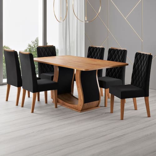 - Acompanha: Mesa de Jantar + 6 Cadeiras + Kit Ferragens + Manual de Montagem