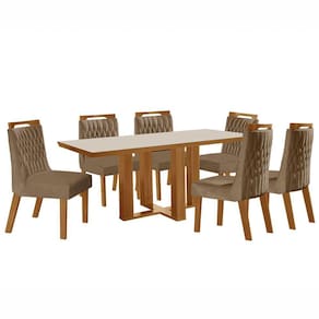 O(a) Mesa de Jantar 6 Lugares Lottus com Vidro Cinamomo/Pena Caramelo - Lj Móveis é produzido em MDP/MDF na escala de brilho Semi-Fosco, e possui um grau de dificuldade de montagem: Médio.