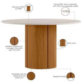Mesa De Jantar 6 Lugares Redonda 135cm Verbena N01 Ypê Off White - Lyam Decor