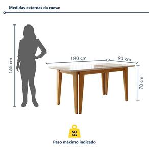 Quantas pessoas comporta? Até 6 cadeiras com conforto. Acabamento: Pintura UV Ambiente Principal: Sala de Jantar codigo_ean: 7900288360861 Complexidade da Montagem: Média: pode ser montado por mais de uma pessoa e/ou necessite de maior conhecimento para montagem Cor: Cinamomo/Off White Cor do Produto: Cinamomo/Off White Escala de Brilho: Fosco Espessura do Tampo: 25 mm Extensível: Não Itens Inclusos: 1 Mesa e Manual de Montagem. Linha ou Coleção: Bella Manual de Montagem e Instalação: https://product-hub-prd.madeiramadeira.com.br/224206137/documents/a6626dc5-2dff-4fa6-a7e7-8cba5bb08965345044773217739452214577.pdf Marca: Valdemóveis Material da Base: Madeira Maciça Material do Tampo: Madeira Maciça Material Principal: Madeira Maciça Medida da Mesa (A x L x P): 78x180x90 Necessita Montagem: Sim Origem do Produto: Nacional Peso: 65,66 kg Possui Portas: Não Possui Rodízio: Não Possui Vidro: Sim Recomendações de Uso, Manutenção e Limpeza: Limpar com pano macio e levemente umedecido. Não utilizar solventes a base e de inflamáveis. Não utilizar produtos abrasivos. Sistema de Montagem: Parafusos Suporta Até (kg): 50 kg Tipo de Madeira Maciça: Eucalipto Tipo de Madeira Maciça da Base: Eucalipto Tipo de Madeira Maciça do Tampo: Eucalipto