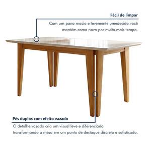 A mesa de jantar com tampo de vidro é resistente? Sim, a base em madeira e o vidro temperado garantem segurança no uso diário.