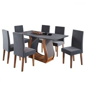 Mesa de Jantar 6 Lugares Roma Imbuia/Cinza/Veludo Grafite - Viero Móveis