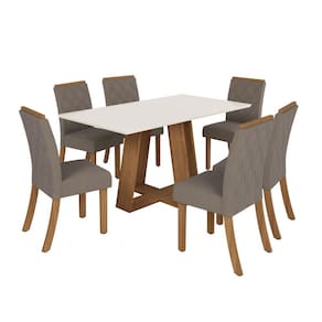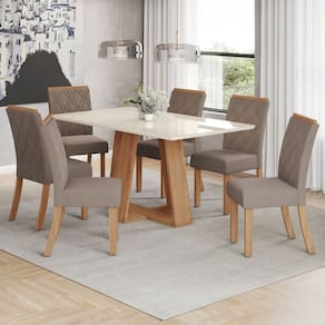O(a) Mesa de Jantar 6 Lugares Sales com Vidro Natural/Off White/Bege - Pnr Móveis é produzido em MDF e MDP na escala de brilho Brilhante e Fosco, e possui um grau de dificuldade de montagem: Médio.