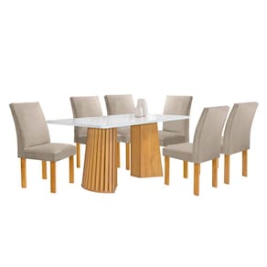 O(a) Mesa de Jantar 6 Lugares Stella Canela com Vidro Ripado Cinamomo/Off White/Boucle Bege - Cel Móveis é produzido em MDF na escala de brilho Fosco, e possui um grau de dificuldade de montagem: Médio.