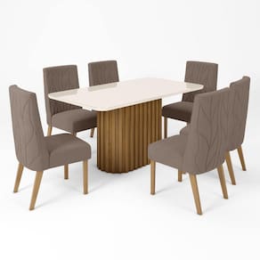 O(a) Mesa de Jantar 6 Lugares Stella com Vidro Nature/Off White/Marrom Amêndoa - Loja é produzido em MDF e MDP na escala de brilho Brilho e Fosco, e possui um grau de dificuldade de montagem: Médio.