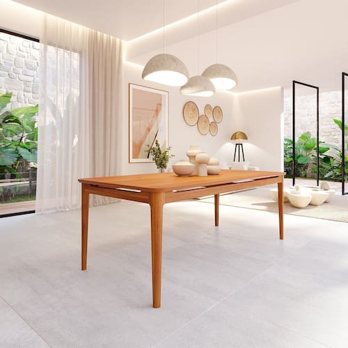 Com um estilo moderno, o design da linha Miriti se destaca pela harmonia entre simplicidade e sofisticação. Os pés das mesas possuem um desenho elegante, que cria a sensação de um tampo flutuante, trazendo leveza ao ambiente. O tampo conta com bordas chanfradas, que conferem um acabamento refinado e mais leveza visual, além de cantos arredondados que deixam o design mais fluido e seguro para casas com crianças. Esses detalhes reforçam a perfeita combinação entre funcionalidade e estética, característica principal da coleção.