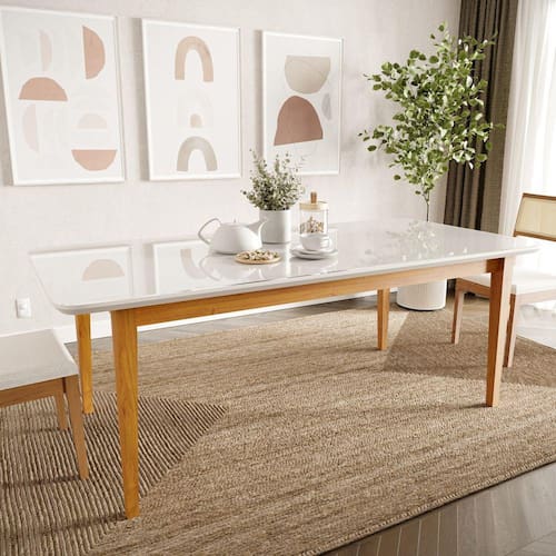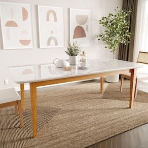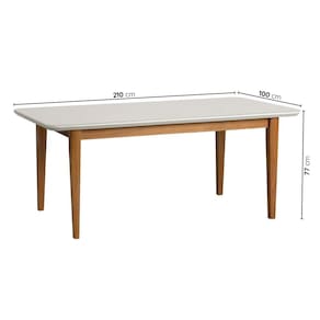 A mesa Tangará, é a escolha perfeita para ambientes elegantes e sofisticados. Sendo uma peça extremamente funcional, ela proporciona todo conforto necessário sem abdicar do estilo e beleza. Possui os pés em madeira Tauari, com tampo em MDF e vidro com bordas chanfradas e acabamento em laca, resistente e elegante. Monte seu ambiente e conte para nós como ficou nos comentários. Acabamento: Verniz Acabamento da Base: Verniz Acabamento do Tampo: Laca Ambiente Principal: Sala de Jantar Complexidade da Montagem: Média: pode ser montado por mais de uma pessoa e/ou necessite de maior conhecimento para montagem Cor: Caramelo/Off White Cor do Produto: Caramelo/Off White Design da Base: 4 Pés Dobrável: Não Escala de Brilho: Semi-Brilho Espessura do Tampo: 39 Extensível: Não Informações Complementares: Itens Inclusos: 1 Mesa, kit de ferragens e manual de montagem Largura Extendida: Largura Quando Extendida: Linha ou Coleção: Tangará Manual de Especificação Técnica: Manual de Montagem e Instalação: https://cdn2.madeiramadeira.com.br/prd/cimol/1091035-13-0029-MANUALDEMONTAGEMMESATANGAR.pdf Material da Base: Madeira Maciça Material do Tampo: Vidro/MDF Material Principal: Madeira Maciça Medida da Base (A x L x P): 73cm x 90,4cm x 176,4cm Medida do Suporte Giratório (L x C x E): Medida do Tampo (L x C x E): 210cm x 100cm x 3,9cm Necessita Montagem: Sim Origem do Produto: Nacional Peso: 67.25999999999999 Possui Base: Sim Possui Rodízio: Não Possui Suporte Giratório: Recomendações de Uso, Manutenção e Limpeza: Para manter seu móvel novo por muito mais tempo, evite locais úmidos, mantenha-o distante de líquidos. Para limpá-lo com segurança utilize uma flanela seca sem produtos abrasivos Sistema de Montagem: Parafusos, buchas americanas, cavilhas e cantoneiras Suporta Até (kg): 50 Tipo de Madeira Maciça: Tauari Tipo de Madeira Maciça da Base: Tauari Tipo de Madeira Maciça do Tampo:
