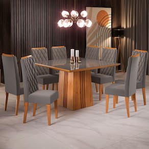 O(a) Mesa de Jantar 8 Lugares Amabile com Vidro Marrom/Veludo Cinza/Grafite - Pnr Móveis é produzido em MDF e MDP na escala de brilho Semi-Brilho, e possui um grau de dificuldade de montagem: Médio.