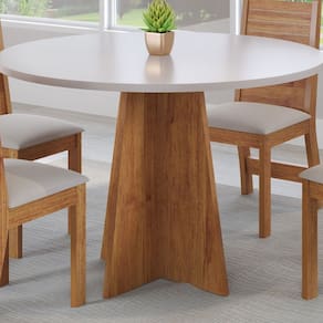 A Mesa de Jantar Neo 90x90cm redonda é perfeita para ambientes compactos e acolhedores. Seu tampo em MDF de 2,5cm recebe pintura de alta qualidade, garantindo durabilidade e um acabamento elegante. A base em formato de X oferece um visual moderno e robusto, além de proporcionar estabilidade ao conjunto. Com design inteligente, acomoda até 4 pessoas com conforto e praticidade. Ideal para cozinhas, salas de jantar ou espaços integrados, combina com diferentes estilos de decoração. Seu formato redondo favorece a interação entre os convidados. Fácil de limpar e manter, é uma excelente escolha para o dia a dia. A estrutura firme valoriza o produto, unindo estética e funcionalidade. Uma mesa compacta, mas com grande presença. Acabamento: Pintura UV Acabamento da Base: Pintura UV Acabamento do Tampo: Pintura UV Ambiente Principal: Sala de Jantar codigo_ean: 7900288206541 Complexidade da Montagem: Média: pode ser montado por mais de uma pessoa e/ou necessite de maior conhecimento para montagem Cor: Mel/ Blonde Cor do Produto: Mel/ Blonde Design da Base: Em X Escala de Brilho: Semi-Brilho Espessura do Tampo: 25 mm Extensível: Não Informações Complementares: Mesa de jantar 90x90 Itens Inclusos: 1 Mesa, Kit Ferragens e Manual de Montagem Linha ou Coleção: Neo Manual de Montagem e Instalação: https://product-hub-prd.madeiramadeira.com.br/127276025/documents/3cb7d127-8226-41eb-b08f-ca7079a4c95e310977452817539643812672.pdf Marca: Viero Material da Base: MDP Material do Tampo: MDF Material Principal: MDF/MDP Medida do Tampo (L x C x E): L:90 x C:90 x E:2,5cm Necessita Montagem: Sim Origem do Produto: Nacional Peso: 21,5 kg Possui prateleira: Não Possui Rodízio: Não Possui Vidro: Não Recomendações de Uso, Manutenção e Limpeza: limpar com pano levemente umedecido em água Sistema de Montagem: Parafusos, cavilhas Suporta Até (kg): 50 kg